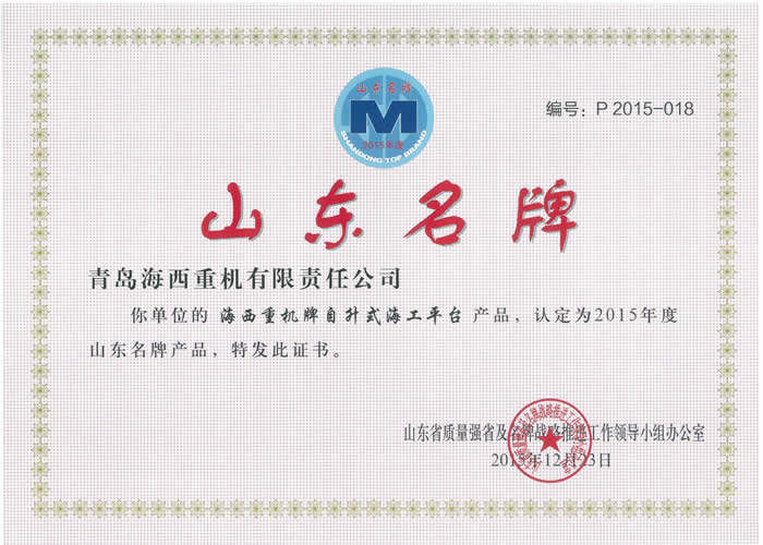 繼青島名牌之后,海西重機(jī)再入名牌榜單,自主研發(fā)制造的自升式海工平臺喜獲2015年度“山東名牌產(chǎn)品”榮譽(yù)稱號!