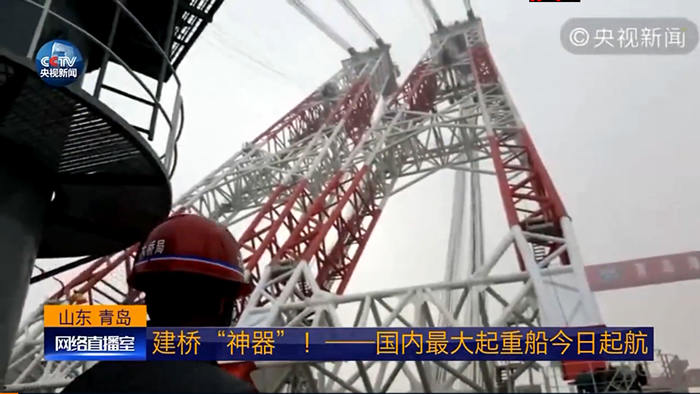 1月9日,由中鐵大橋局投資建造的“大橋海鷗”號(hào)起重船在青島海西重機(jī)碼頭完成交付,這是繼“德浮3600噸浮吊”之后,海西重機(jī)交付的又一臺(tái)起重設(shè)備。央視新聞進(jìn)行了全程跟蹤報(bào)道。