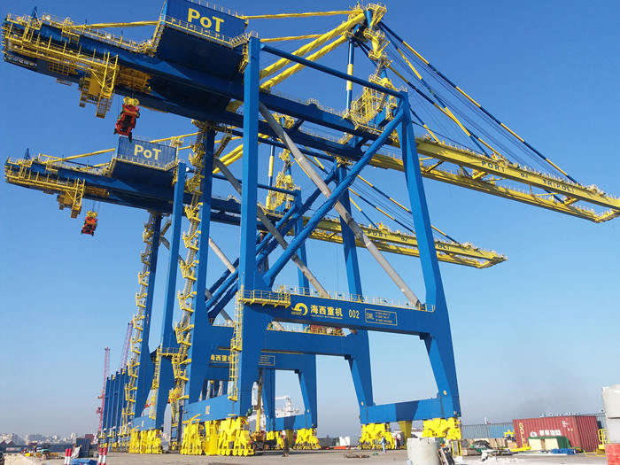該批設(shè)備于2016年12月10日在海西重機(jī)制造現(xiàn)場成功滾裝發(fā)運(yùn),南下印度洋,北上大西洋,穿越地中海,航行一萬六千海里,歷經(jīng)2個(gè)多月的時(shí)間,于當(dāng)?shù)貢r(shí)間2017年2月27日上午安全抵達(dá)的黎波里港。為確保儀式順利舉行,設(shè)備抵達(dá)后,海西團(tuán)隊(duì)加班加點(diǎn),齊心協(xié)力,克服現(xiàn)場多重困難,全力開展卸船工作。歷時(shí)6天,海西人打贏了一場卸船攻堅(jiān)戰(zhàn),保證了儀式的準(zhǔn)時(shí)開展。高大威猛的“鋼鐵巨人”屹立在的黎波里港,與美麗的地中海交相輝映,為碼頭增添了一道亮麗的風(fēng)景線,成為了的黎波里港口的新地標(biāo)。