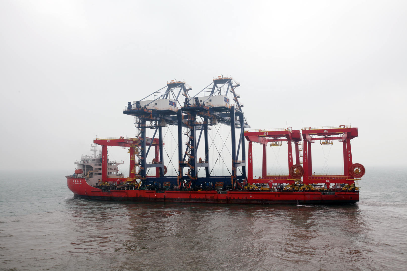 11月5日10時(shí)58分,碼頭現(xiàn)場(chǎng)鞭炮齊鳴,汽笛長(zhǎng)鳴,伴隨著運(yùn)輸船主機(jī)運(yùn)轉(zhuǎn)的轟鳴聲,裝載海西重機(jī)為寧波舟山港乍浦港區(qū)承制的2臺(tái)50t-38m岸邊集裝箱起重機(jī)(簡(jiǎn)稱G216項(xiàng)目)和為日照港集裝箱發(fā)展有限公司承制的第二批3臺(tái)自動(dòng)化軌道式集裝箱龍門(mén)起重機(jī)(簡(jiǎn)稱G219項(xiàng)目)的運(yùn)輸船緩緩駛離公司碼頭,標(biāo)志G219項(xiàng)目第二批設(shè)備和G216項(xiàng)目順利發(fā)運(yùn)。
