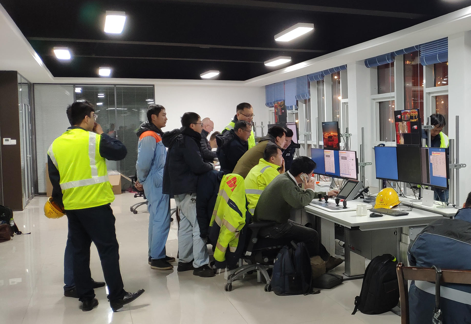 經(jīng)過11月份一個月的緊張努力,運輸任務(wù)圓滿完成,藍圖成為了現(xiàn)實!現(xiàn)場調(diào)試階段,即使夜幕降臨,施工現(xiàn)場還是燈火通明,各個班組緊張有序地對當天的工作收尾,遠控中心調(diào)試工作有序進行,不管多晚,技術(shù)人員都會對當天工作進行總結(jié),制定第二天的生產(chǎn)計劃。