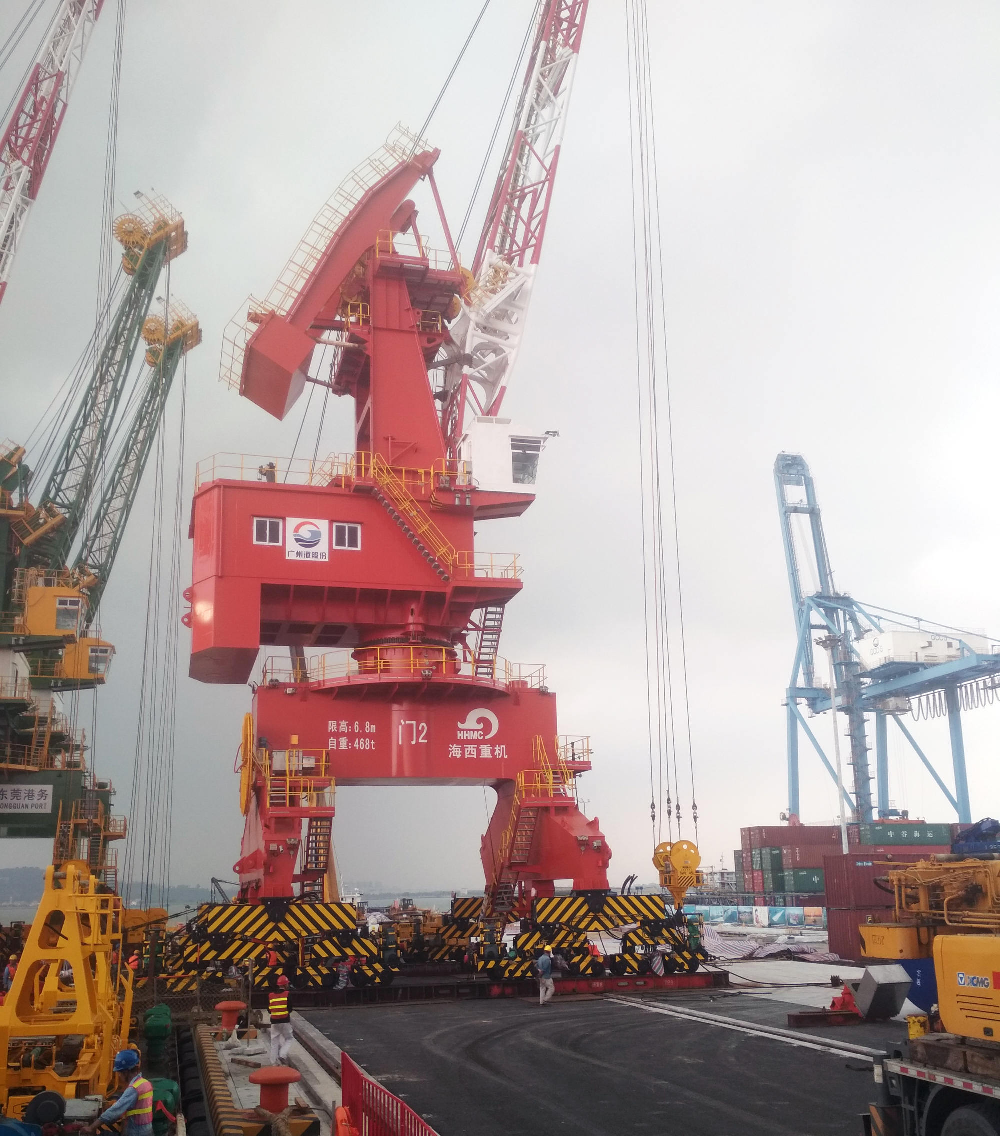 滿滿的一船門機(jī)。3月19日,我司分別為廣州港股份有限公司黃埔港務(wù)分公司、廣州港股份有限公司新沙港務(wù)有限公司、東莞市虎門港駁船碼頭有限公司制造的各2臺門機(jī)(共6臺)在海西重機(jī)的生產(chǎn)碼頭同船順利發(fā)運(yùn)。3月26日,運(yùn)輸船安全抵達(dá)黃埔港,一場卸船攻堅(jiān)戰(zhàn)就此展開。