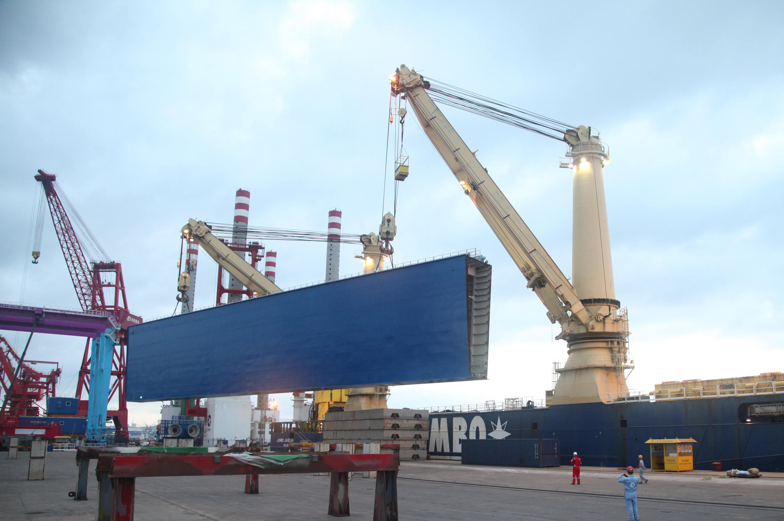 海西重機(jī)從設(shè)計(jì)研發(fā)、生產(chǎn)管理、質(zhì)量控制、風(fēng)險(xiǎn)管控等方面嚴(yán)格把控,從項(xiàng)目開始即高質(zhì)量嚴(yán)要求,對設(shè)備性能、安全性、使用維護(hù)等設(shè)計(jì)全面精心把關(guān)審核,對尺寸、精度、外觀、安裝接口位置等高精度控制,得到業(yè)主及駐廠意大利船級社監(jiān)理的認(rèn)可??紤]到用戶現(xiàn)場無大型起重設(shè)備,此次發(fā)運(yùn)采用具有2臺900噸克令吊的重吊船進(jìn)行作業(yè),滿足了所有吊裝和運(yùn)輸要求,不僅節(jié)約了項(xiàng)目成本,而且提高了裝卸船的工作效率。