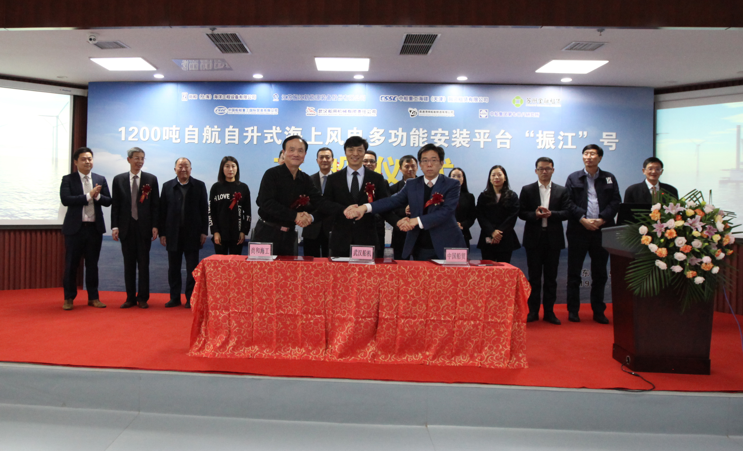 12月13日下午,國內(nèi)首座1200噸自航自升式風(fēng)電安裝平臺——“振江”號交付儀式在武漢船機(jī)海西重機(jī)隆重舉行。尚和(上海)海洋工程裝備有限公司、江蘇振江新能源裝備股份有限公司、中信銀行、中國船舶及海洋工程設(shè)計研究院、中國船級社等單位領(lǐng)導(dǎo)和項目相關(guān)人員共同見證了這一歷史性時刻。