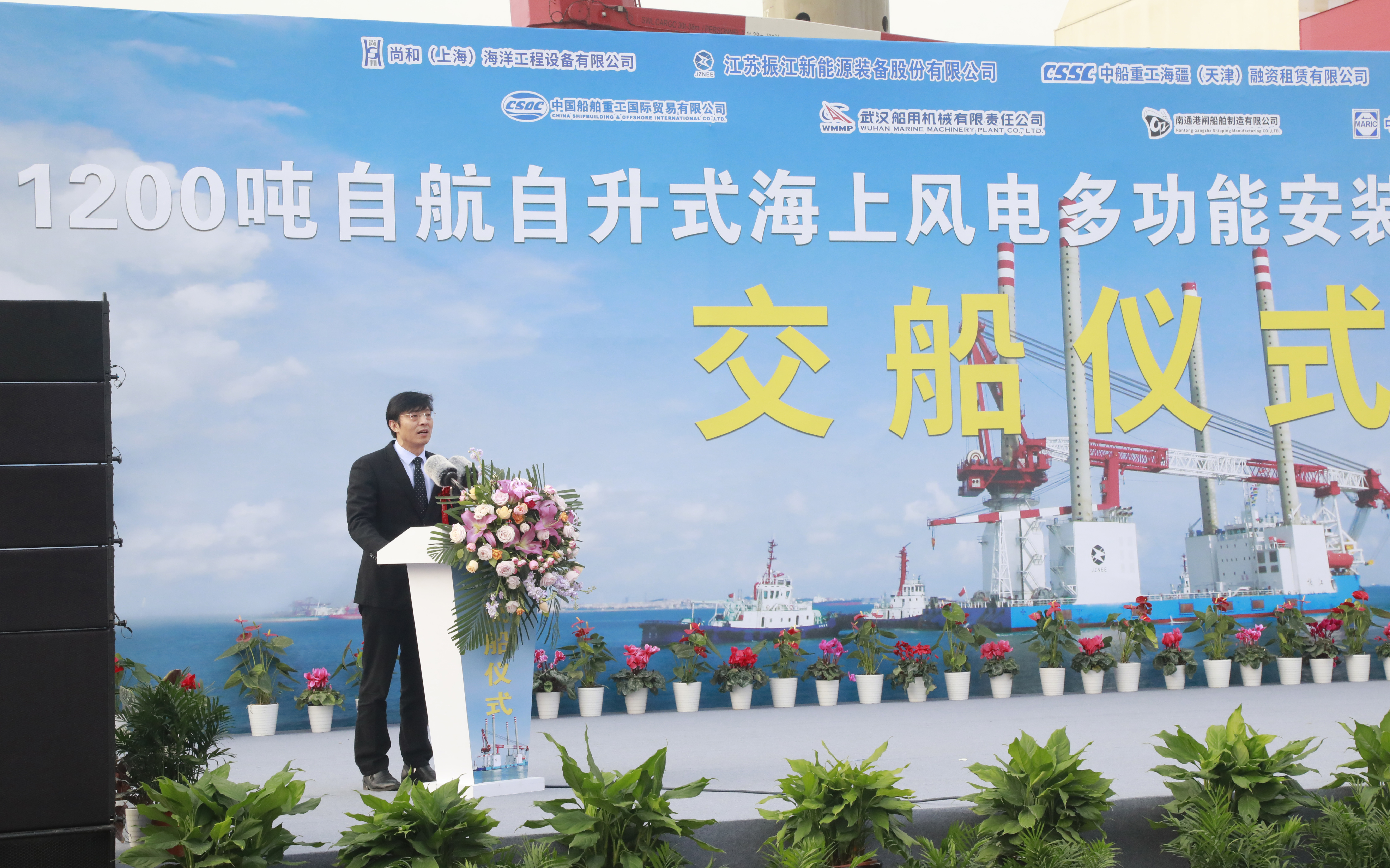 武漢船機(jī)黨委書記、董事長馬聚勇代表公司在平臺交付儀式上致辭,對參加交船儀式的各位領(lǐng)導(dǎo)、同仁以及為該平臺生產(chǎn)制造和試驗成功付出辛勤勞動的所有監(jiān)造人員和工作人員表示由衷感謝。馬聚勇同志指出,“振江”號風(fēng)電安裝平臺是武漢船機(jī)連續(xù)交付多艘自升式輔助平臺后,再次作為總包方承擔(dān)的全部項目建造任務(wù)。項目合同簽訂后,公司上下高度重視,充分發(fā)揮設(shè)備集成和平臺總包能力,集中武漢本部和青島海西兩地優(yōu)勢資源,不斷加強(qiáng)生產(chǎn)組織管理,從源頭上保證了建造質(zhì)量和周期,較好地滿足了平臺建造進(jìn)展。自平臺開工建造到今天正式交船,中國船級社始終給予悉心指導(dǎo),各參建方發(fā)揮自身優(yōu)勢,通力合作,突破多項技術(shù)難關(guān),為平臺順利交付和使用提供了強(qiáng)有力保障