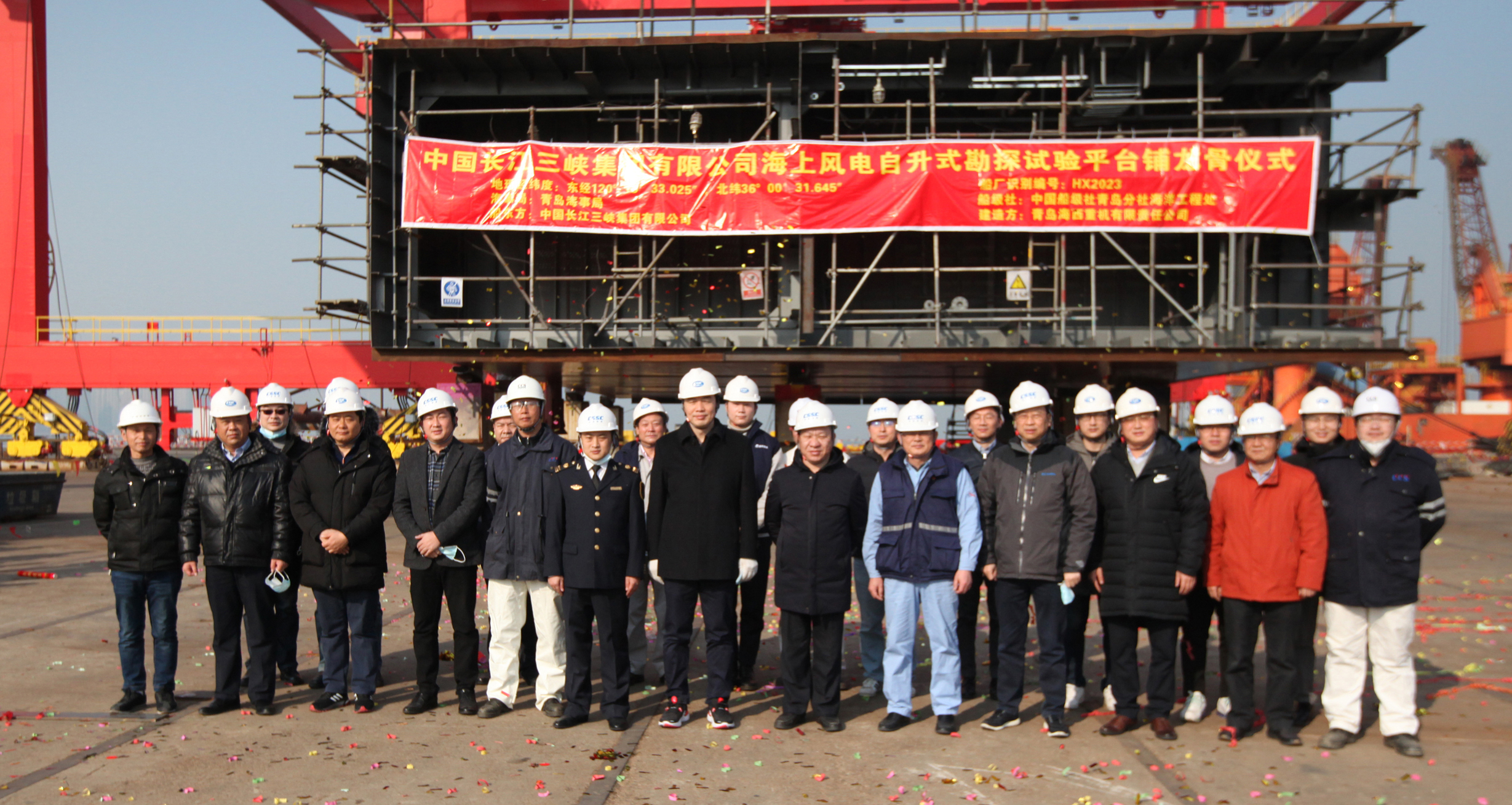 12月22日上午,在青島海事局、中國(guó)船級(jí)社青島分社、中國(guó)長(zhǎng)江三峽集團(tuán)有限公司、中國(guó)船舶集團(tuán)旗下武漢船機(jī)海西重機(jī)各方代表共同見(jiàn)證下,“中國(guó)三峽101”海上風(fēng)電自升式勘探試驗(yàn)平臺(tái)順利完成鋪龍骨儀式,標(biāo)志著該項(xiàng)目正式進(jìn)入平臺(tái)搭載建造階段。