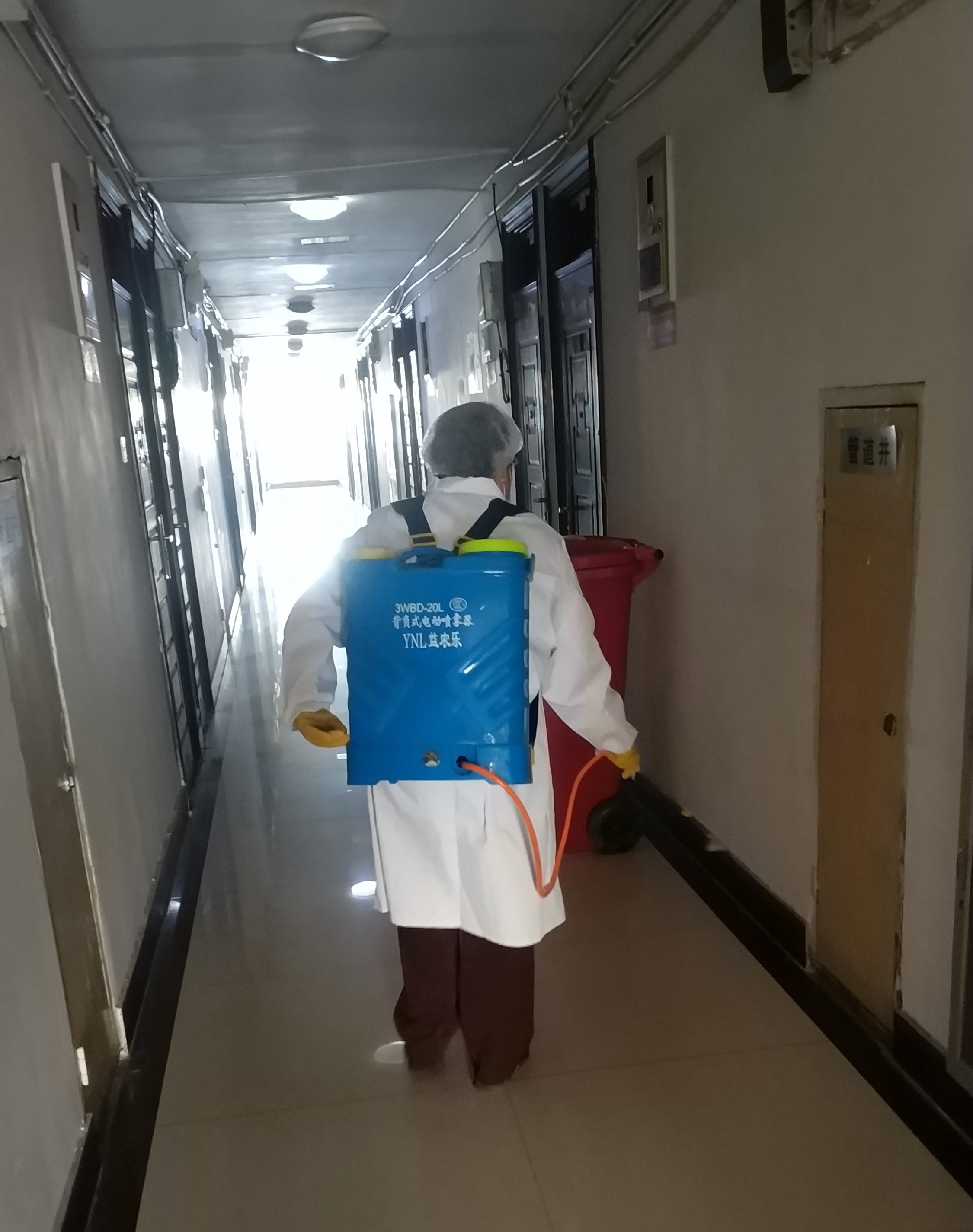 宿舍防疫消毒,守護(hù)環(huán)境健康。齊抓共管宿舍環(huán)境衛(wèi)生,防疫提醒廣宣傳,勤通風(fēng)、重消毒。