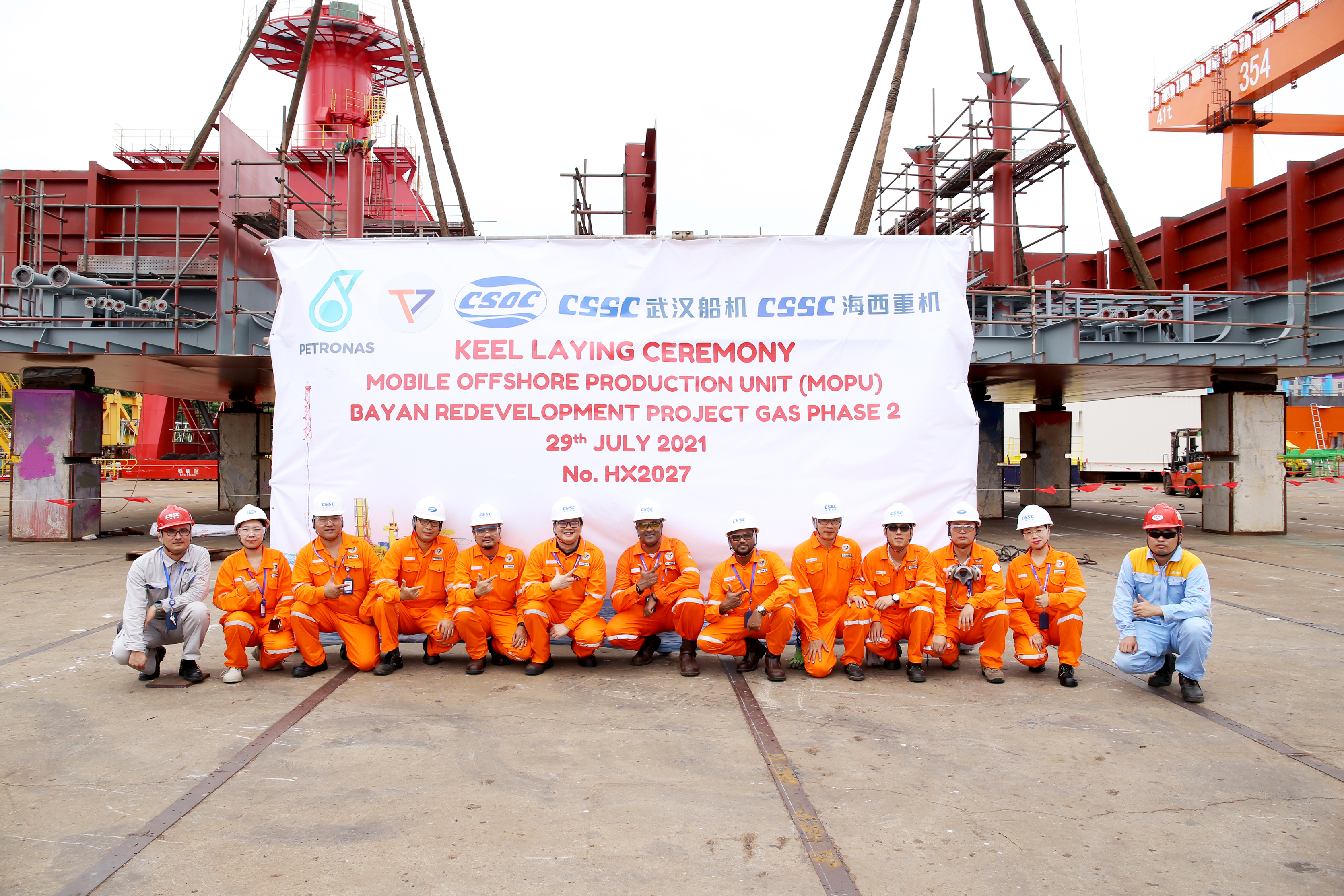7月29日,馬來西亞可移動自升式生產(chǎn)(天然氣)平臺(簡稱MOPU)鋪龍骨儀式順利舉行,標志著該平臺正式進入船臺搭載階段。馬來西亞國家石油公司、T7 Global公司、ABS、中國船貿(mào)、中國船舶集團旗下武漢船機海西重機各方代表通過現(xiàn)場會和遠程視頻直播的方式參加了該儀式。