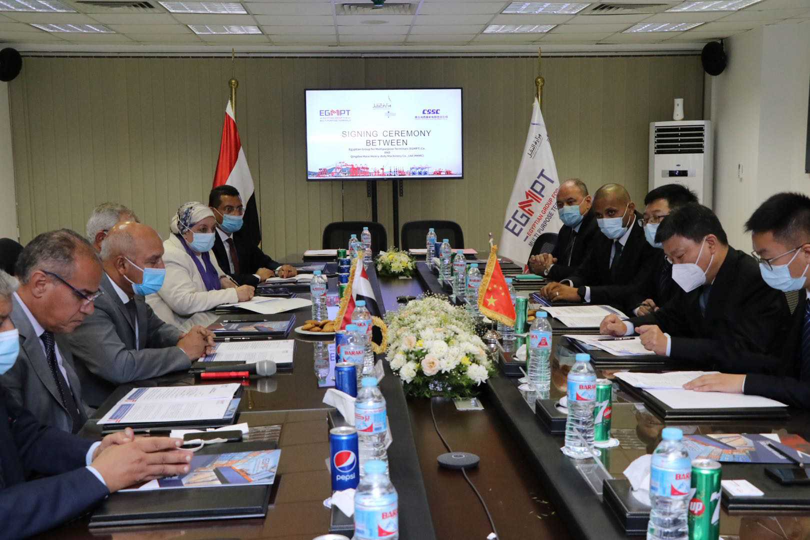 當(dāng)?shù)貢r(shí)間8月7日,中國船舶集團(tuán)旗下武漢船機(jī)海西重機(jī)公司與埃及亞歷山大港多用途碼頭簽訂批量岸橋項(xiàng)目。埃及交通部部長Kamel Elwazir、多用途碼頭(EGMPT)主席Abdelkader Darwish、達(dá)飛集團(tuán)駐埃及負(fù)責(zé)人Eng.Tariq Zaghloul及EGMPT技術(shù)團(tuán)隊(duì),海西重機(jī)黨委書記、董事長鄧振山等出席現(xiàn)場簽約儀式。