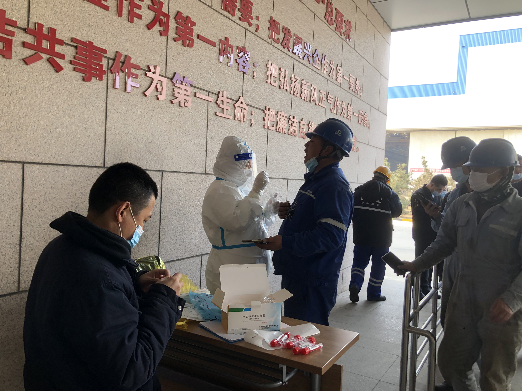 3月3日,對(duì)收到疫情短信和隨訪電話以及可能與確診病例時(shí)間節(jié)點(diǎn)和地點(diǎn)重疊的人員,海西重機(jī)組織全員核酸檢測。積極響應(yīng)青島市疫情防控部署,不傳謠,不信謠,同時(shí)及時(shí)宣傳疫情最新動(dòng)態(tài)和相關(guān)政策,保證生產(chǎn)組織、人員管控、員工生活等有條不紊、不斷不亂,全力以赴筑牢疫情防控堅(jiān)實(shí)防線。
