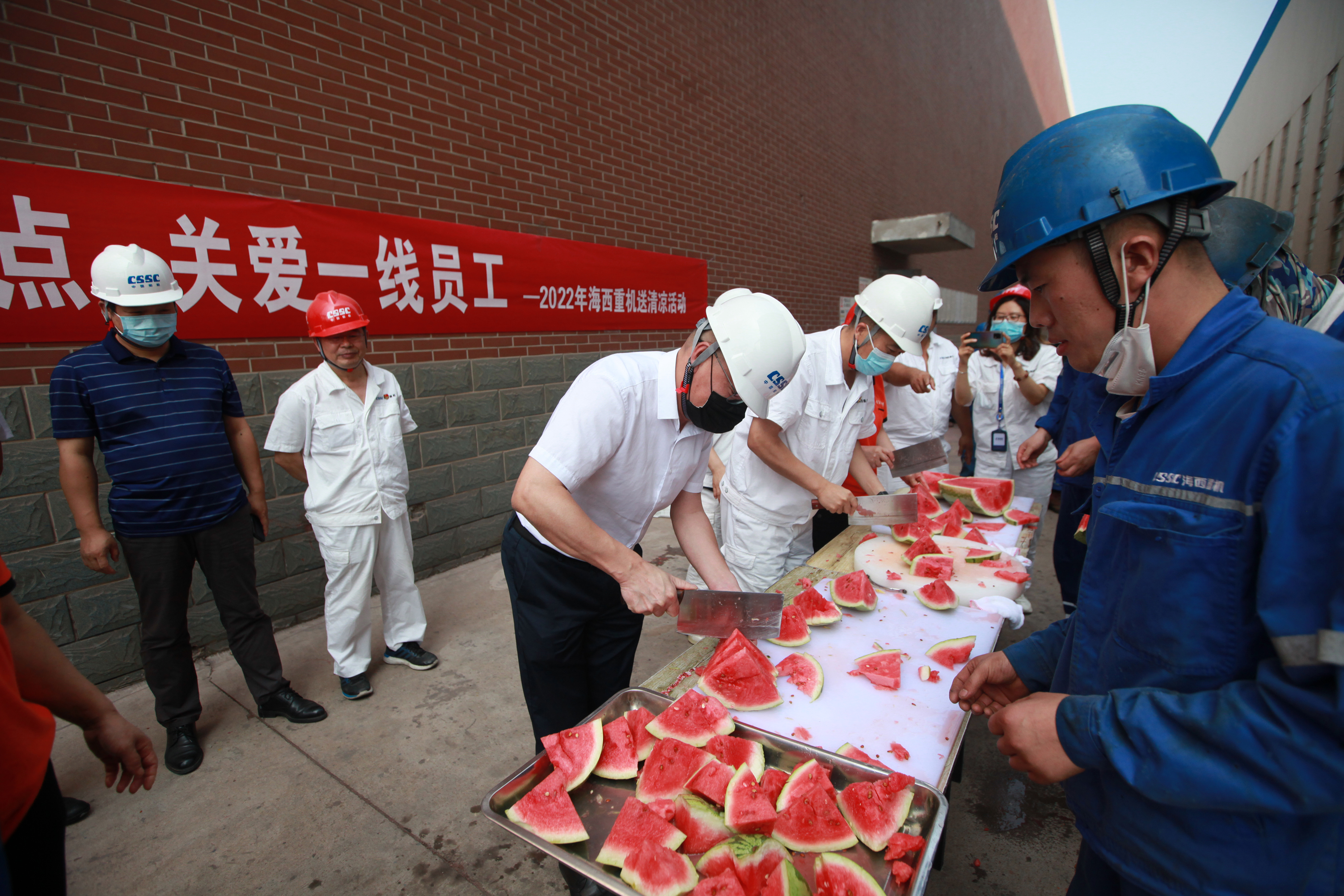 武漢船機(jī)總會(huì)計(jì)師、工會(huì)主席陳世龍,海西重機(jī)黨委副書(shū)記、紀(jì)委書(shū)記、工會(huì)主席朱聲凱等到生產(chǎn)現(xiàn)場(chǎng)開(kāi)展慰問(wèn),為大家送上了鮮甜解暑的西瓜,對(duì)現(xiàn)場(chǎng)一線員工的辛勤付出表示感謝,叮囑大家高溫高濕天氣下要加強(qiáng)自我保護(hù),合理安排作息,確保平安度夏。