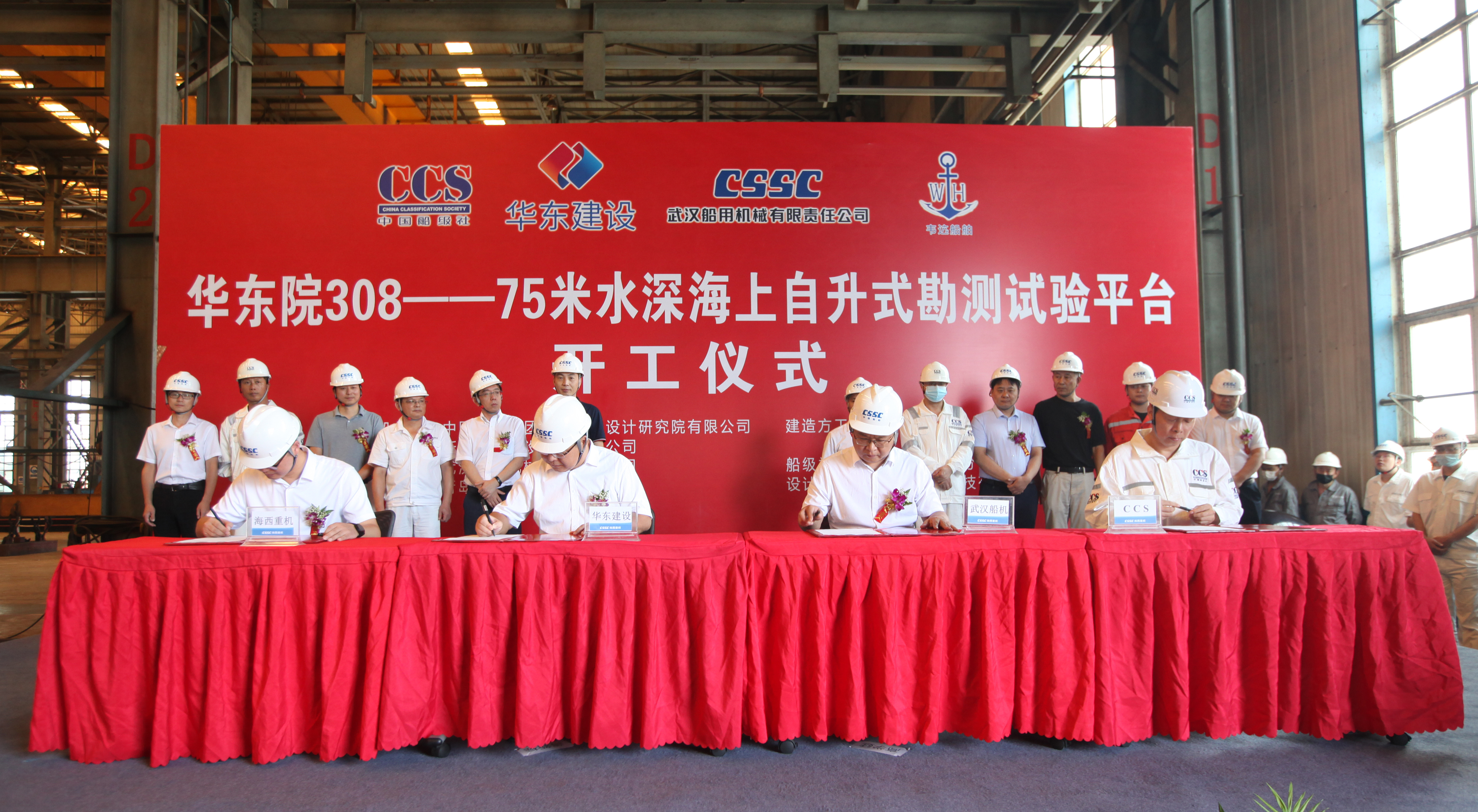 8月26日,中國船舶集團(tuán)旗下武漢船機(jī)海西重機(jī)公司承建的華東院308——75米水深海上自升式勘測(cè)試驗(yàn)平臺(tái)順利開工。浙江華東建設(shè)工程有限公司、中國船級(jí)社青島分社、杭州逸秀船舶技術(shù)服務(wù)有限公司、上海韋迒船舶科技有限公司、中國船舶工業(yè)貿(mào)易有限公司、武漢船用機(jī)械有限責(zé)任公司、青島海西重機(jī)有限責(zé)任公司代表出席儀式。