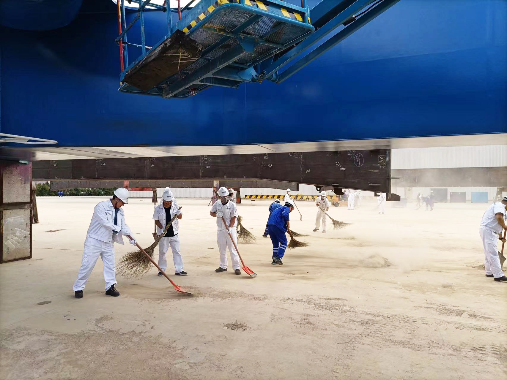 近期臺(tái)風(fēng)過境,暴雨天氣帶來了秋季的涼意,卻也給廠區(qū)生產(chǎn)帶來了不便。新拼裝場(chǎng)地區(qū)域雨水褪去后留下一層厚厚的泥土,影響了該區(qū)域的生產(chǎn)活動(dòng)。值此國慶節(jié)來臨之際,為建設(shè)美麗廠區(qū),喜迎“國慶”,充分發(fā)揮黨員先鋒模范作用以及入黨積極分子、青年團(tuán)員和骨干的主觀能動(dòng)性,中國船舶旗下武漢船機(jī)海西重機(jī)公司黨委于9月20日-9月29日組織開展迎國慶主題義務(wù)勞動(dòng)活動(dòng),清理新拼裝場(chǎng)地泥土。