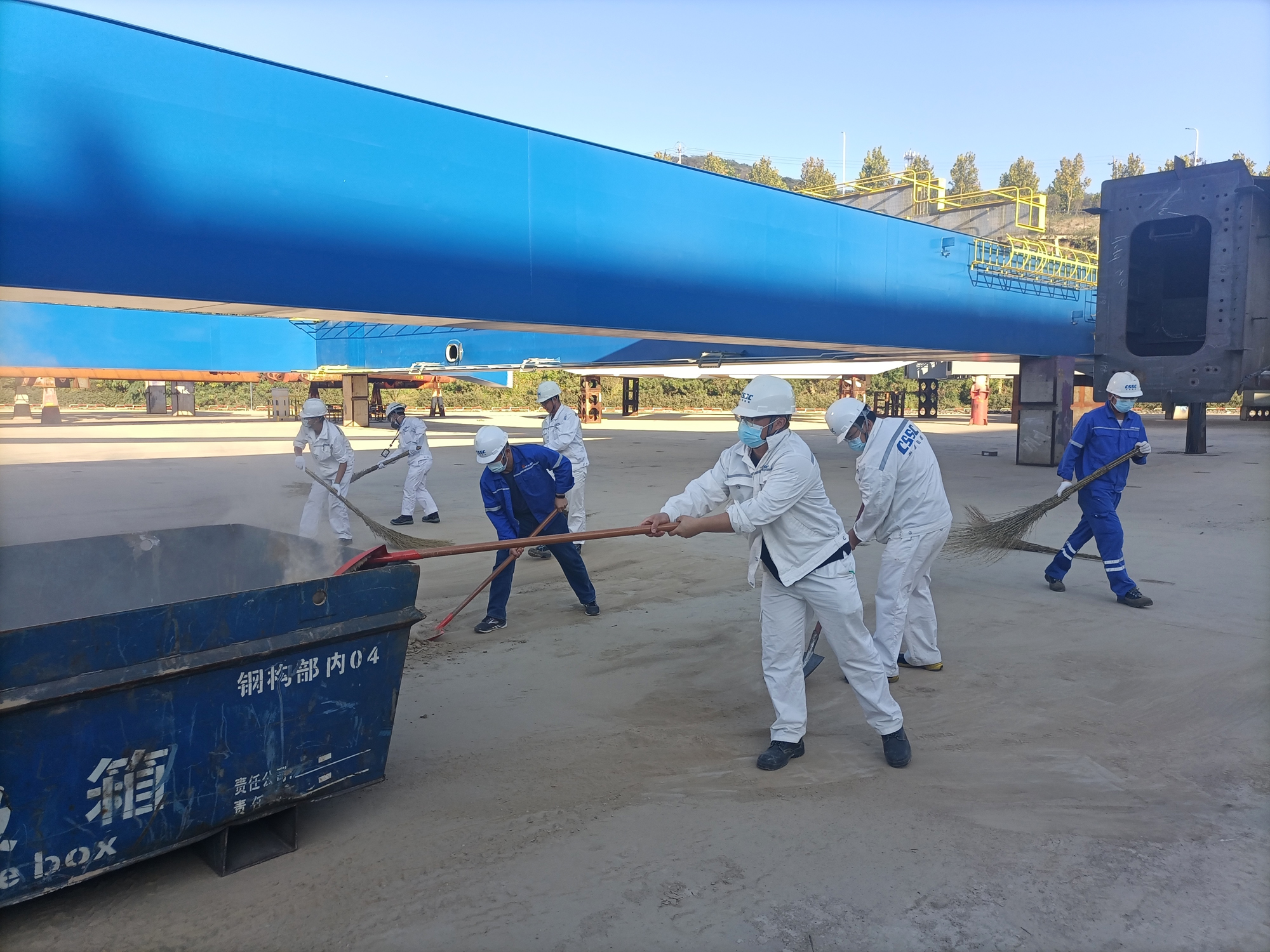 各黨支部根據(jù)劃分好的勞動(dòng)區(qū)域精心策劃,對(duì)支部參與人員進(jìn)行分組,細(xì)化任務(wù)分工,提前領(lǐng)用清潔工具,為活動(dòng)開展做足準(zhǔn)備。每天下午四點(diǎn),相應(yīng)的黨支部根據(jù)分工安排,帶好清潔工具,分組奔赴新拼裝場(chǎng)地區(qū)域。大家熱情似火,干勁十足。每個(gè)參與者不怕苦不怕累,不怕塵土迷了眼睛,用掃帚掃、用鐵鍬鏟,齊心協(xié)力,爭(zhēng)做先鋒。汗水濕透了每個(gè)人的衣襟,熱火朝天的勞動(dòng)場(chǎng)面感染著在場(chǎng)每一個(gè)人,工作服蒙上了一層塵土,每個(gè)人的臉上卻洋溢著笑容,帶走了泥土,留下了熠熠生輝的奉獻(xiàn)精神。