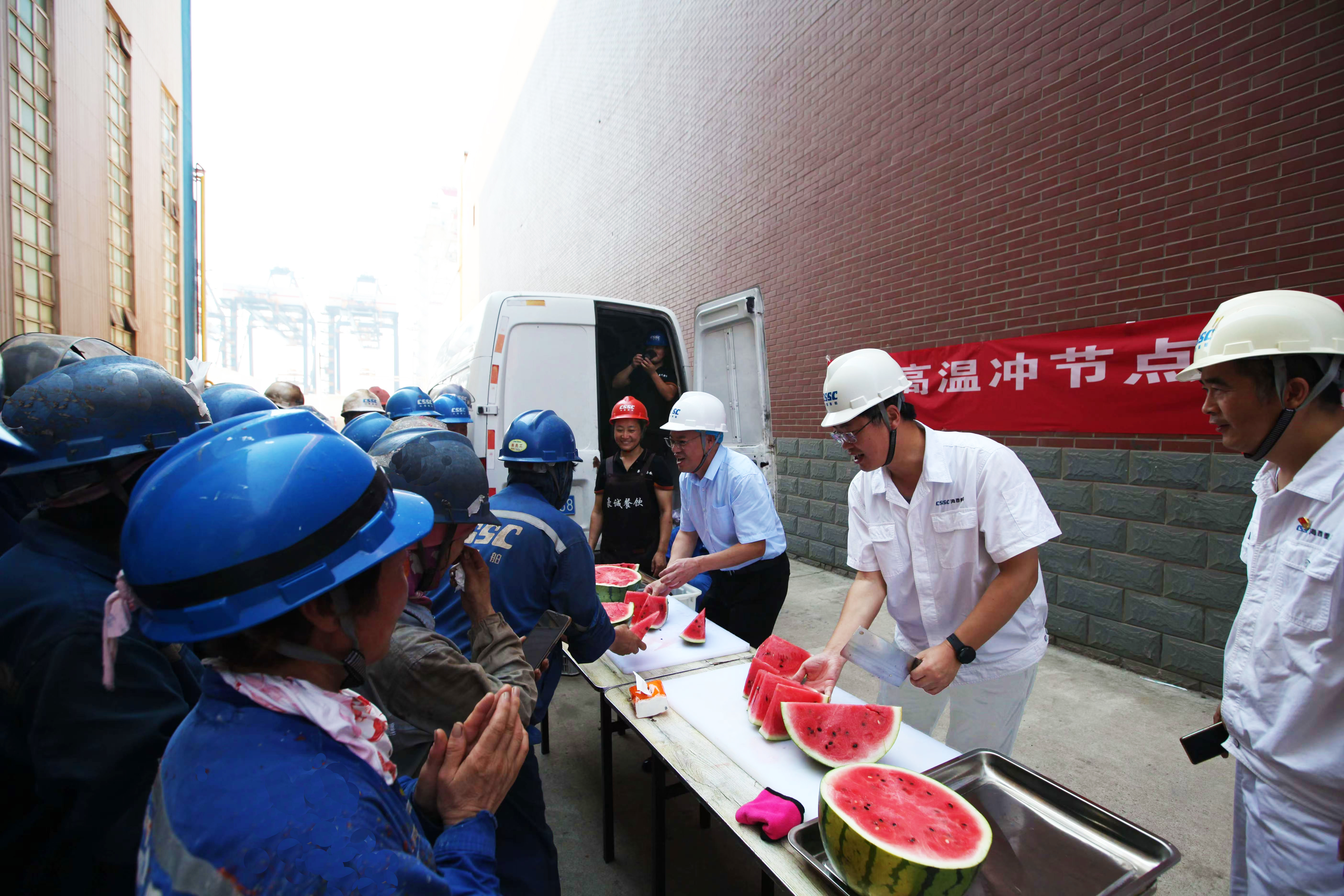 7月31日下午,武漢船機(jī)總會(huì)計(jì)師、工會(huì)主席陳世龍,海西重機(jī)總經(jīng)理蔣新標(biāo)、工會(huì)主席朱聲凱等公司領(lǐng)導(dǎo)來到生產(chǎn)現(xiàn)場(chǎng),為大家送上了解暑西瓜,表達(dá)了對(duì)一線員工的辛勤付出的感謝,叮囑大家高溫高濕天氣下要加強(qiáng)自我保護(hù),注意作息,確保平安度夏。