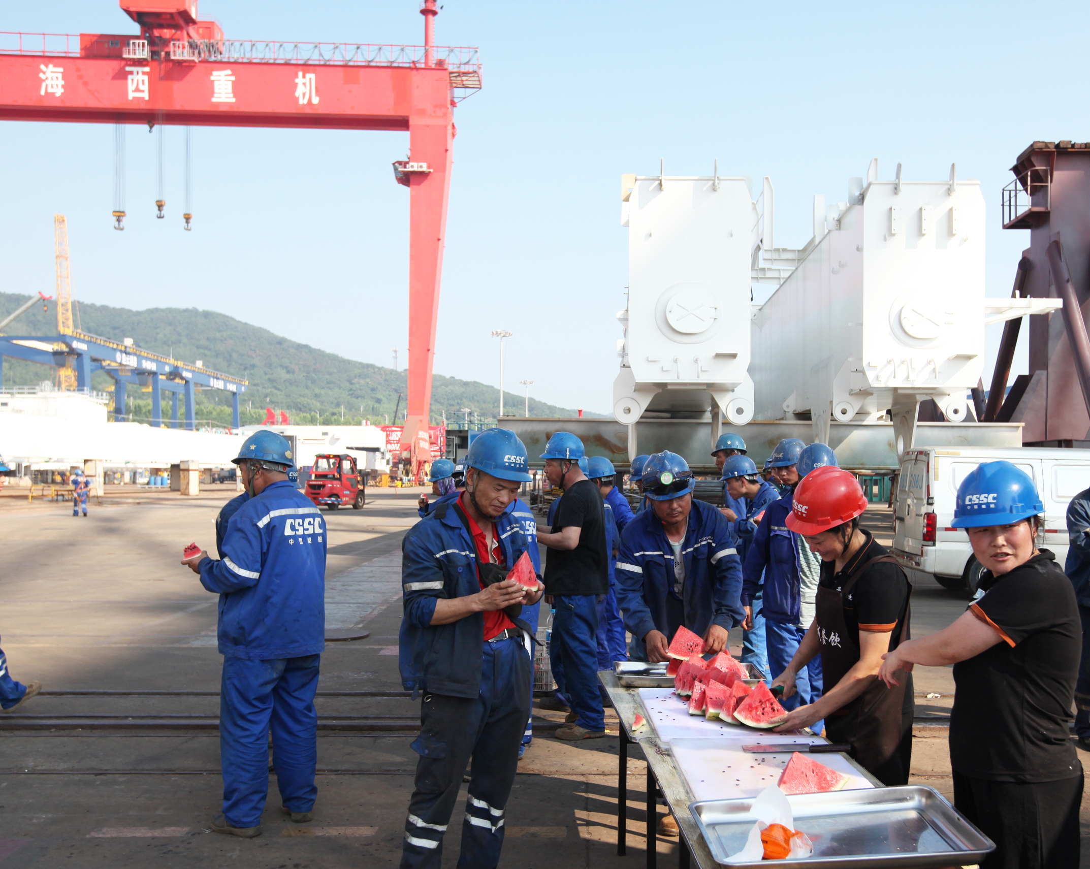 日盛三伏,酷暑炎炎。然而酷暑并不能阻擋住員工們大干快干的高漲熱情,各個(gè)生產(chǎn)項(xiàng)目都在緊鑼密鼓、熱火朝天地推進(jìn)著。為充分保障一線員工的生產(chǎn)安全和身心健康,中國(guó)船舶集團(tuán)旗下武漢船機(jī)海西重機(jī)公司于近日組織開展了“戰(zhàn)高溫沖節(jié)點(diǎn) 關(guān)愛一線員工”2024年夏季“送清涼”活動(dòng)。