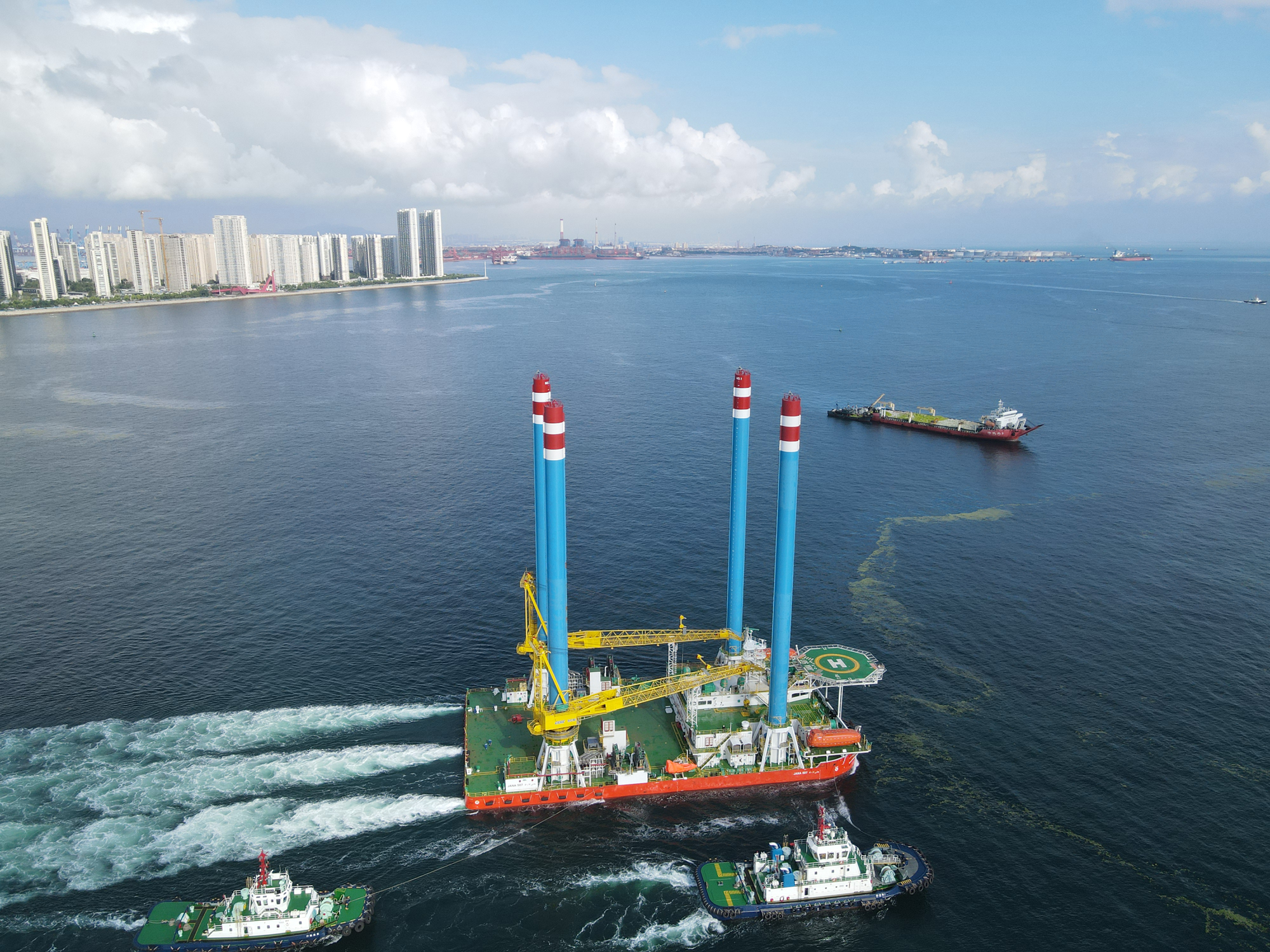 8月3日,在青島口岸官方部門海事、海關(guān)和邊防的大力支持下,中船集團武漢船機總包建造的JANA506、JANA507兩座新一代淺吃水自升式海上作業(yè)支持平臺從青島海西重機碼頭順利起航,開赴沙特。該海工平臺滿載情況下吃水 2m,能夠滿足波斯灣特殊淺水海域油田的服務工作,這批裝備的交付助力“一帶一路”倡議再添新成果。