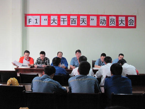 為確保公司重點(diǎn)產(chǎn)品3690噸浮吊(F1)項(xiàng)目結(jié)構(gòu)件制作的順利完成,生產(chǎn)黨支部與品質(zhì)黨支部聯(lián)合組織了F1項(xiàng)目“百日大干”勞動(dòng)競賽。并于2012年6月29日召開競賽動(dòng)員大會(huì),詳細(xì)布置了競賽活動(dòng)。