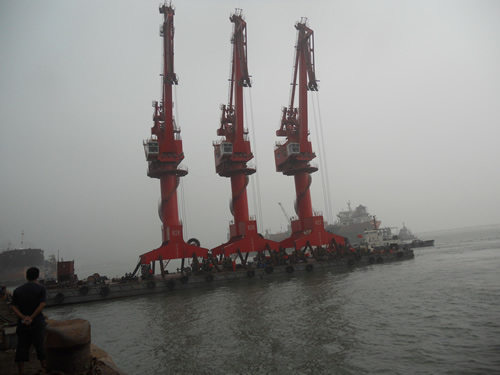 G115于2012年2月3日正式開工,在公司各個部門的努力奮斗下,于8月17日承載著海西的希望揚(yáng)帆起航發(fā)往連云港,于8月19日靠泊連云港集團(tuán)東泰公司。在現(xiàn)場工作人員的共同努力下,于8月25日三臺機(jī)全部落軌東泰公司碼頭,并于9月7日交予業(yè)主使用?,F(xiàn)場的安裝調(diào)試進(jìn)展迅速,領(lǐng)先于振華公司同期落軌的兩臺門機(jī),三臺門機(jī)投入使用至今運(yùn)行平穩(wěn),深得業(yè)主方面認(rèn)可。