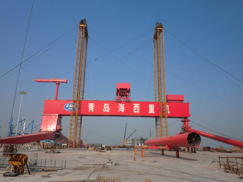 由青島海西重機(jī)自主設(shè)計(jì)、建造和使用的1600T大型龍門式起重機(jī)于2012年11月23日順利提升。