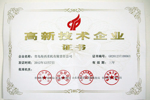 成為國(guó)家高新技術(shù)企業(yè),不僅是對(duì)公司技術(shù)水平和產(chǎn)品技術(shù)含量一個(gè)高標(biāo)準(zhǔn)的定性,而且是海西重機(jī)發(fā)展歷史上的里程碑,標(biāo)志著青島海西重機(jī)從“海西制造”邁向了“海西創(chuàng)造”之路!
