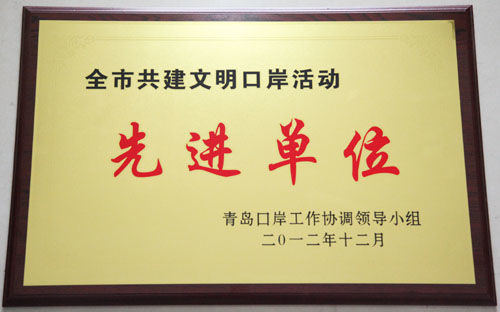 2012年度“全市共建文明口岸活動(dòng)先進(jìn)單位”榮譽(yù)稱(chēng)號(hào)花落青島海西重機(jī)有限責(zé)任公司。