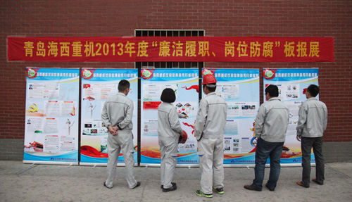 以反腐倡廉深入開展為契機(jī),青島海西重機(jī)將廉政文化融入企業(yè)核心價(jià)值觀建設(shè),堅(jiān)持“防、救、戒”三術(shù)相結(jié)合,進(jìn)一步筑牢了拒腐防變的思想防線。營造出了“學(xué)廉、倡廉、崇廉、守廉”的良好氛圍,打造了風(fēng)清氣正的干事創(chuàng)業(yè)環(huán)境,為企業(yè)持續(xù)、健康、穩(wěn)健發(fā)展構(gòu)筑牢固的“鋼鐵長城”,提供紀(jì)律保證!
