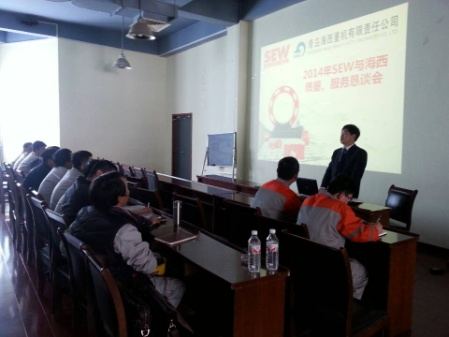 近日,根據(jù)合作計劃,SEW-傳動設(shè)備(天津)有限公司技術(shù)人員來海西重機就減速機的使用和安裝進行交流,公司項目部、物資部、品質(zhì)部等部門相關(guān)人員參加了交流會。