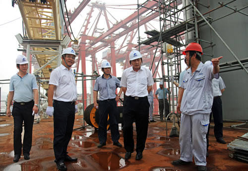7月15日,中船重工副總經(jīng)理董強(qiáng)深入海西重機(jī)生產(chǎn)現(xiàn)場(chǎng),查看了在制的90米自升式海洋平臺(tái)項(xiàng)目、為海南洋浦批量研制的岸橋、輪胎吊項(xiàng)目以及出口意大利的超巴拿馬岸橋(60t-62m岸橋)項(xiàng)目等,并就產(chǎn)品種類調(diào)整實(shí)效、安全生產(chǎn)責(zé)任制落實(shí)等與各級(jí)干部進(jìn)行交流,提出了指導(dǎo)意見。