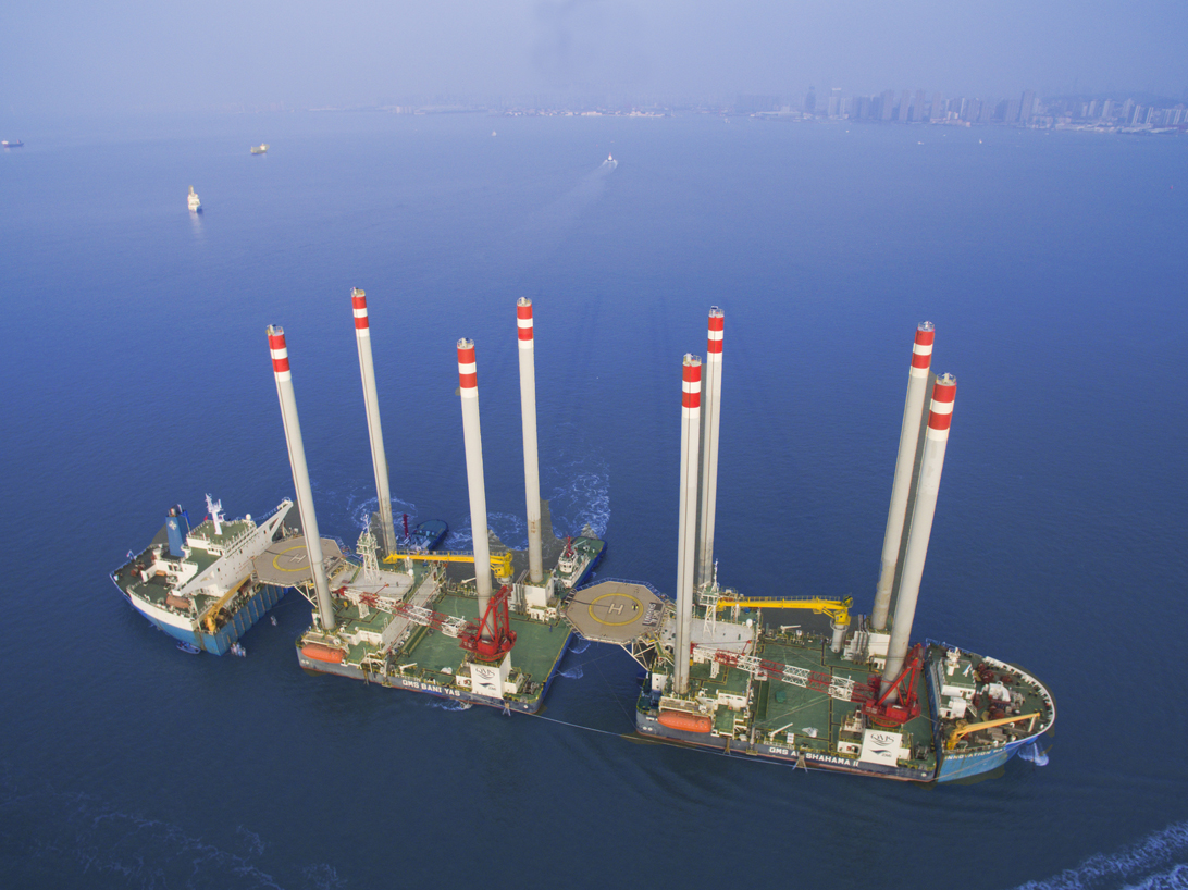 90米自升式海洋平臺(tái)發(fā)船(德賽...